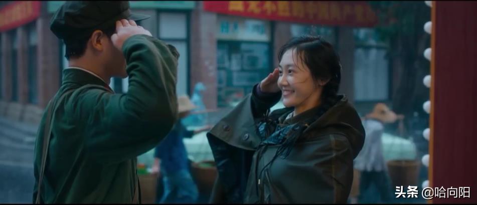 这一天雨下的正大,男主角刘峰从远方接来了文工团的新兵-何小萍,小萍的家庭出身不好,她的亲生父亲正处于劳改中。而有一个还在劳改的父亲,在当时是非常为人所轻的,这使得小萍在日常生活里时时处于自卑之中。当兵之后,小萍母亲一直催促小萍寄给她一张军装照,希望以此来改变为人所轻的局面。作为迎接新兵的人,刘峰是了解小萍的情况的,也明白着小萍的顾虑。于是在躲雨的廊下,刘峰告诉小萍他已经按照小萍继父的出身,把小萍的家庭背景改为了“革干“了。小萍听到之后很高兴,向刘峰敬了一个不标准的军礼。接着,故事的画面徐徐向我们展开,而这两人后面的经历正如此刻他们穿在身上的雨衣一般,随风飘荡、极不安稳……
