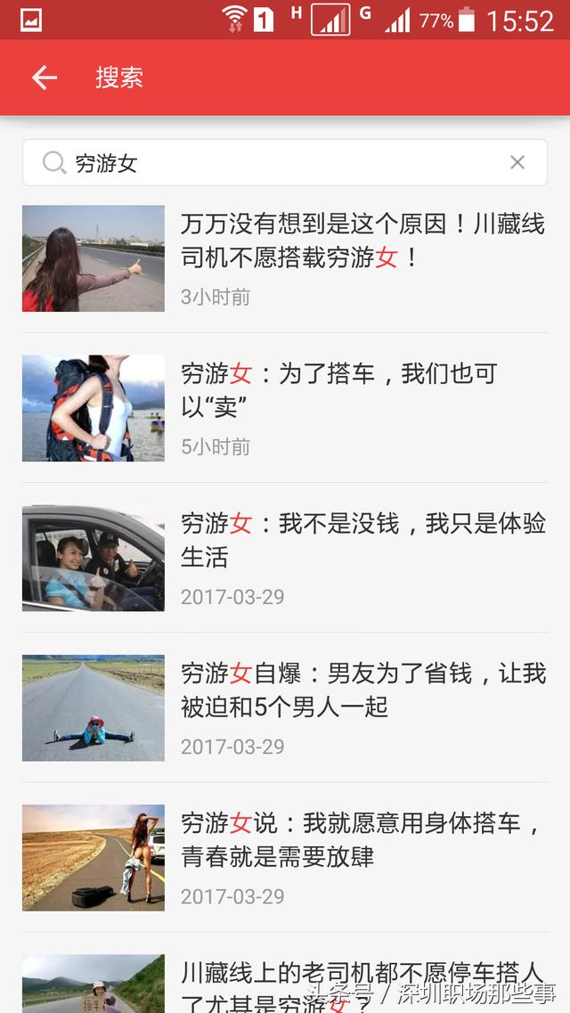 所谓川藏线“穷游女”,就是指那些自由行进藏,一路搭顺风车的女孩!而这些女孩,与川藏线,青藏线,亦或着是滇藏线,新藏线的司机之间,说不清道不明的关系!我试着在某自媒体平台搜索“穷游女”,结果如下: