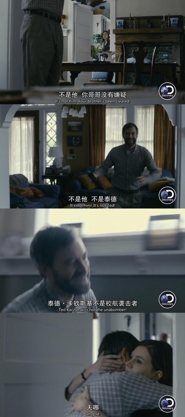 不不不,编剧怎么可能这么写?后续发展也是高度还原了当年真实的历史事件。炸弹客的弟弟和弟妹认出了炸弹客的写作风格。怕炸弹客是自己的哥哥,匿名寄去一封他们哥哥的信,让FBI鉴定一下是不是与宣言出自同一人。