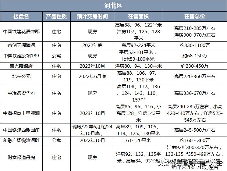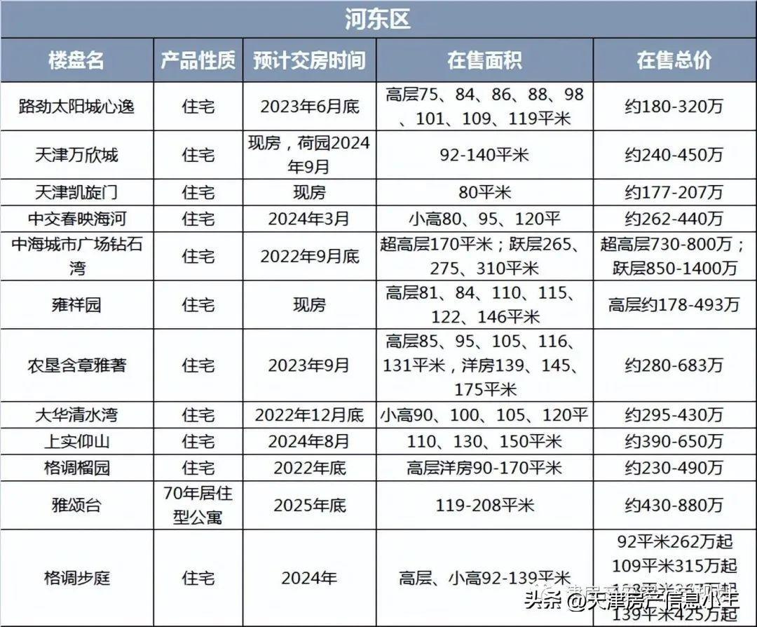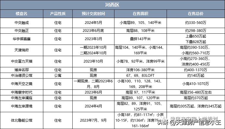 总体来说,住宅市内六区的新房200w左右起步(河北、河东,红桥有房)首付至少需要70~80w,其中和平、南开、河西基本没有小户型,都是大面积的改善。