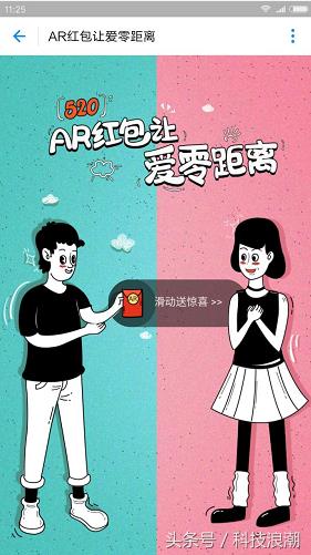 2、在扫一扫界面里选择右下角的“AR”选项,在弹出的界面里单击“AR红包让爱零距离”即可进入藏红包环节;