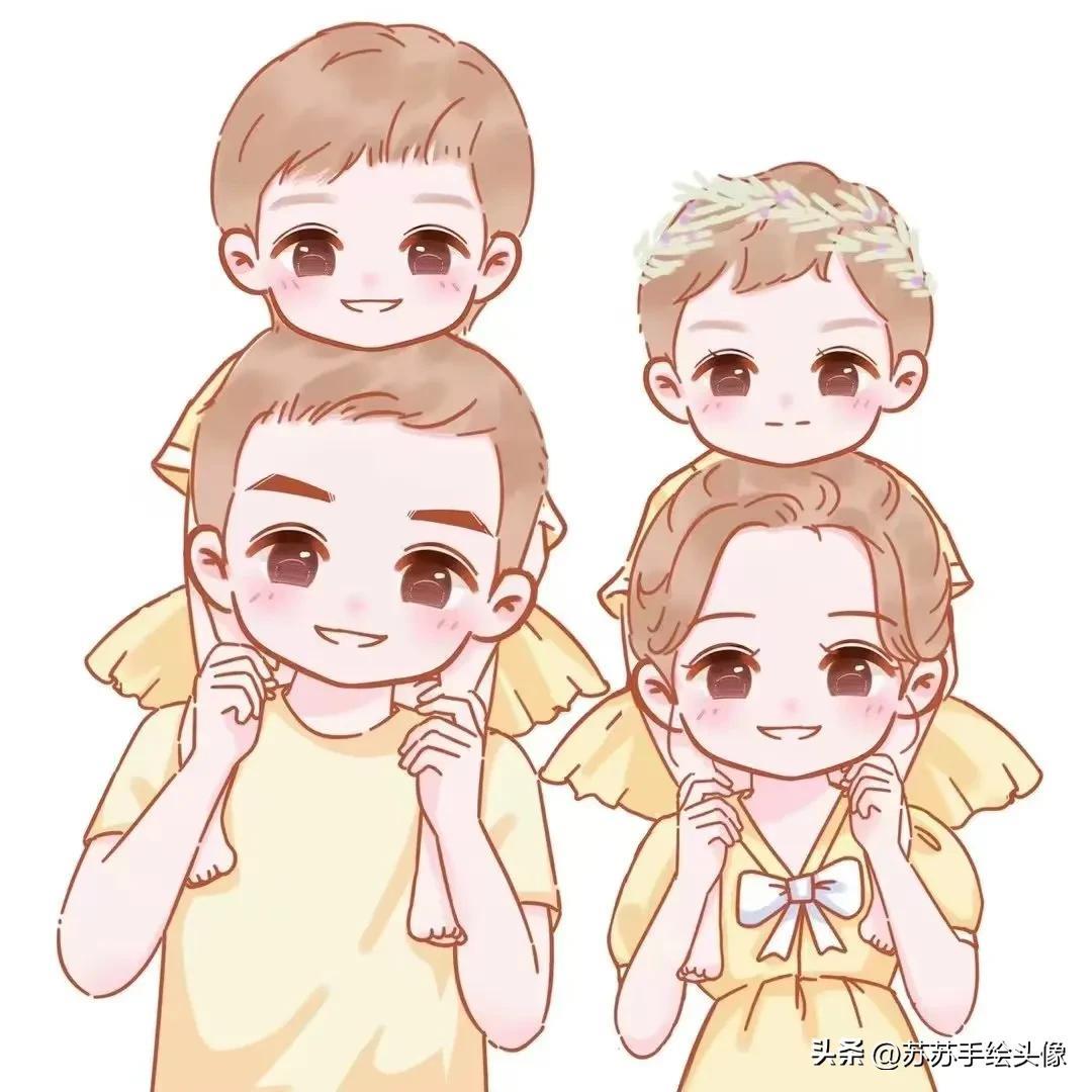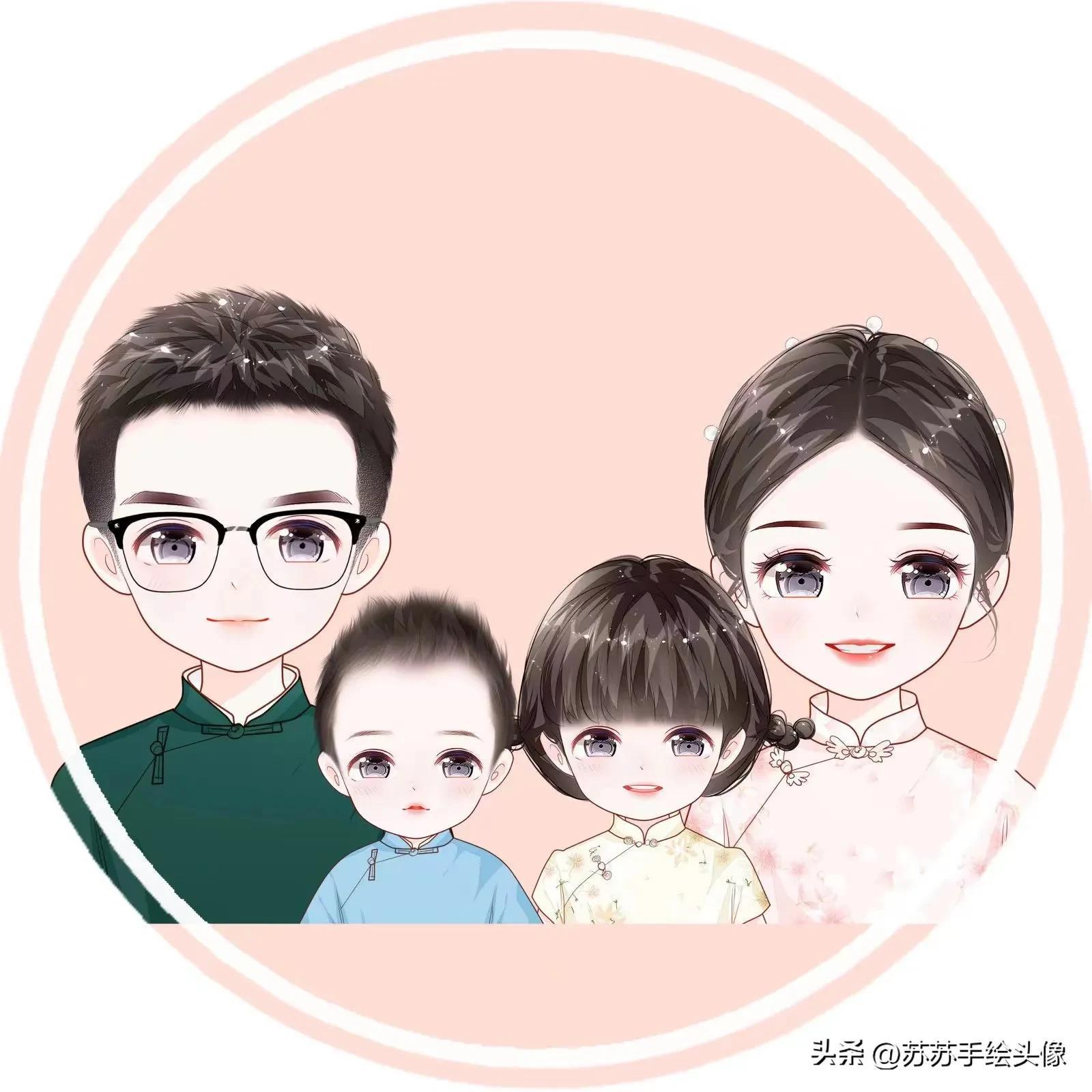 换个头像吧,一家人的卡通全家福头像,温馨有爱好幸福