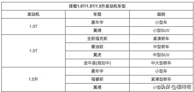福特1.6 L EcoBoost I-4 中国1.5 L EcoBoost I-4