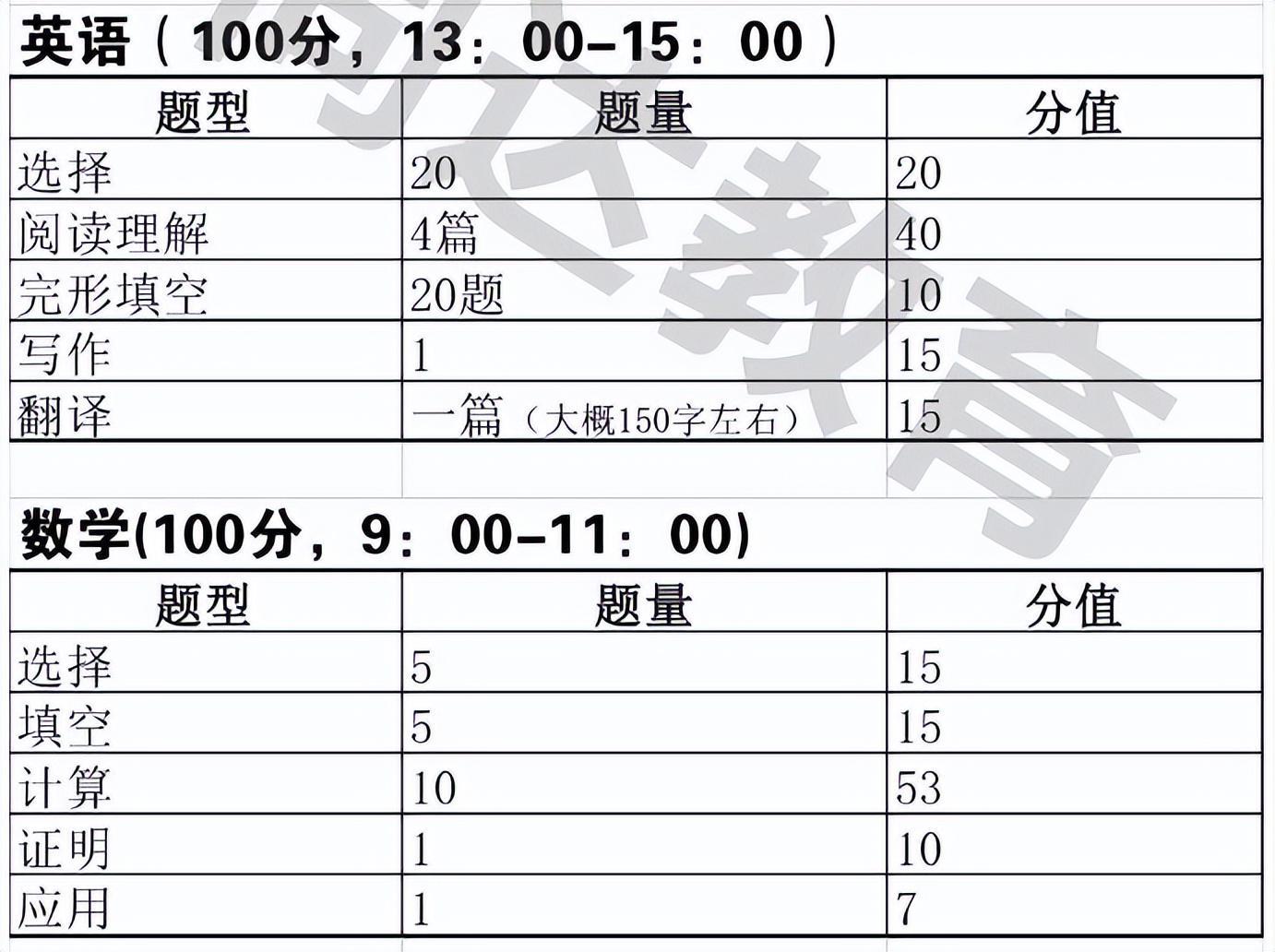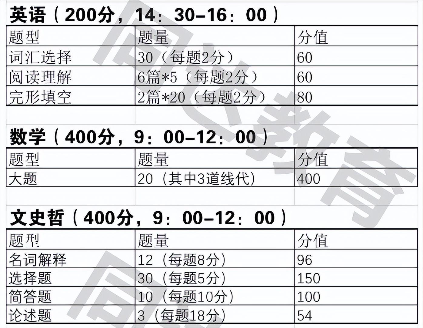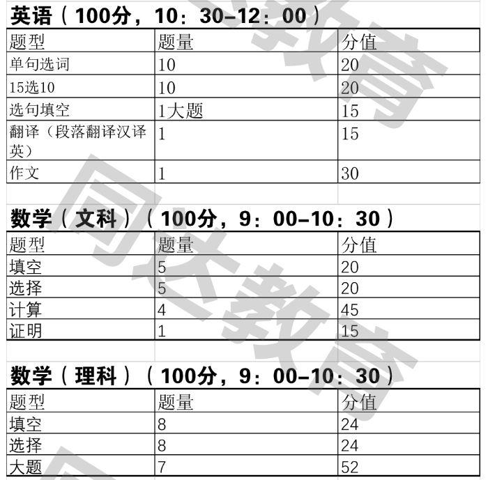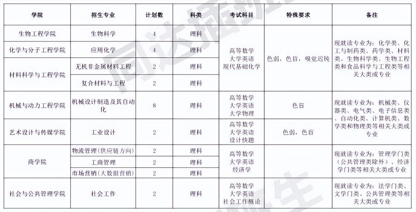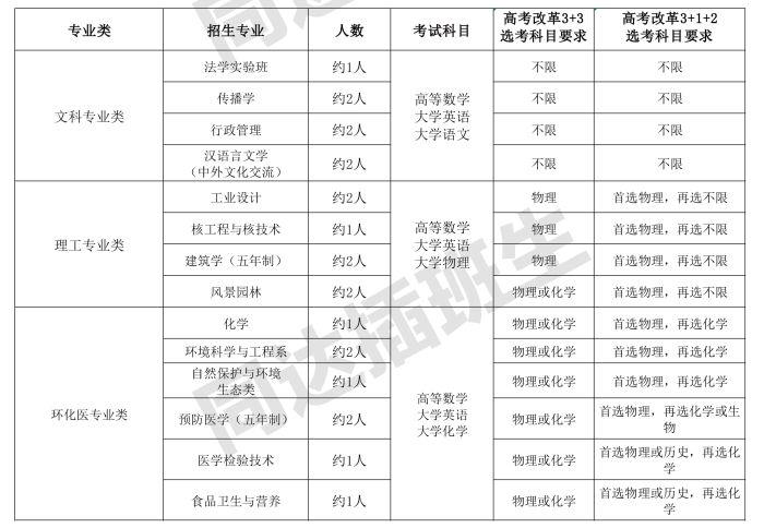 可报考专业+人数+考试科目