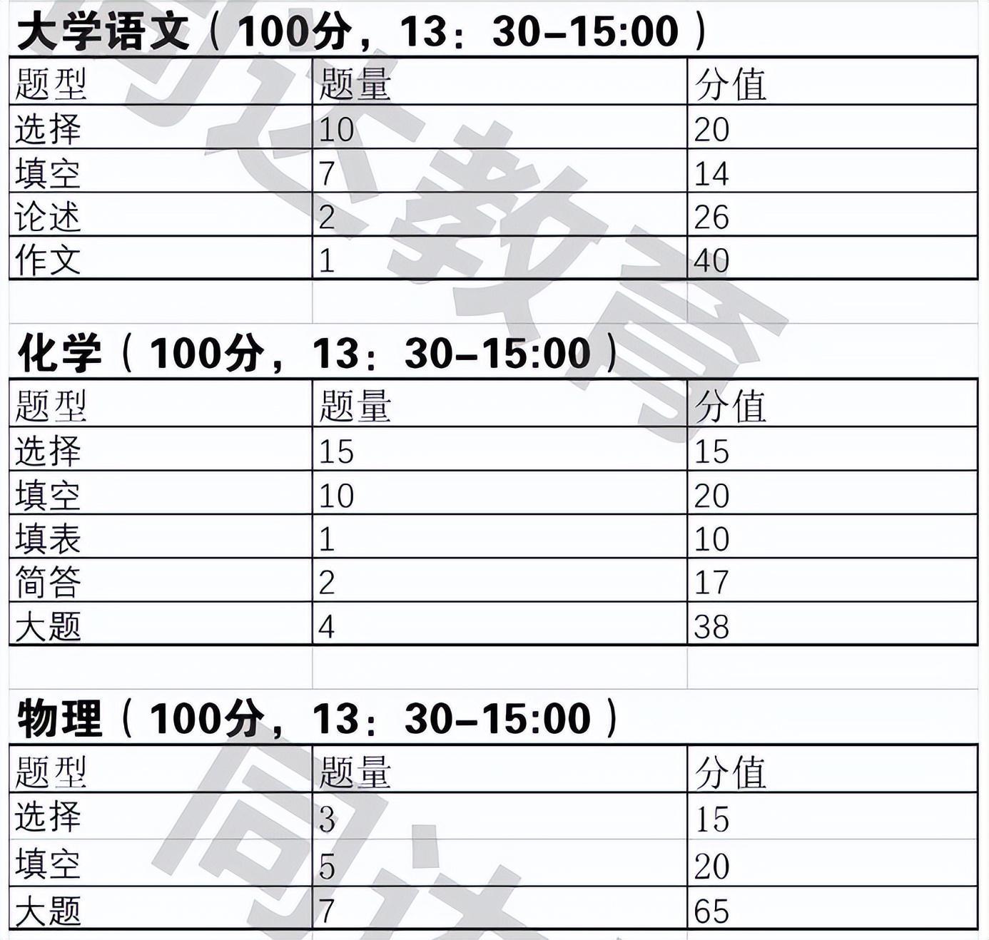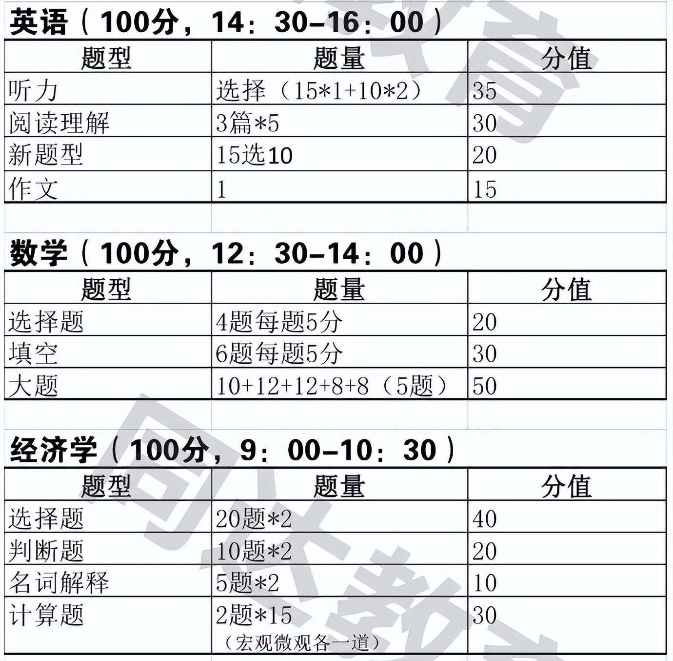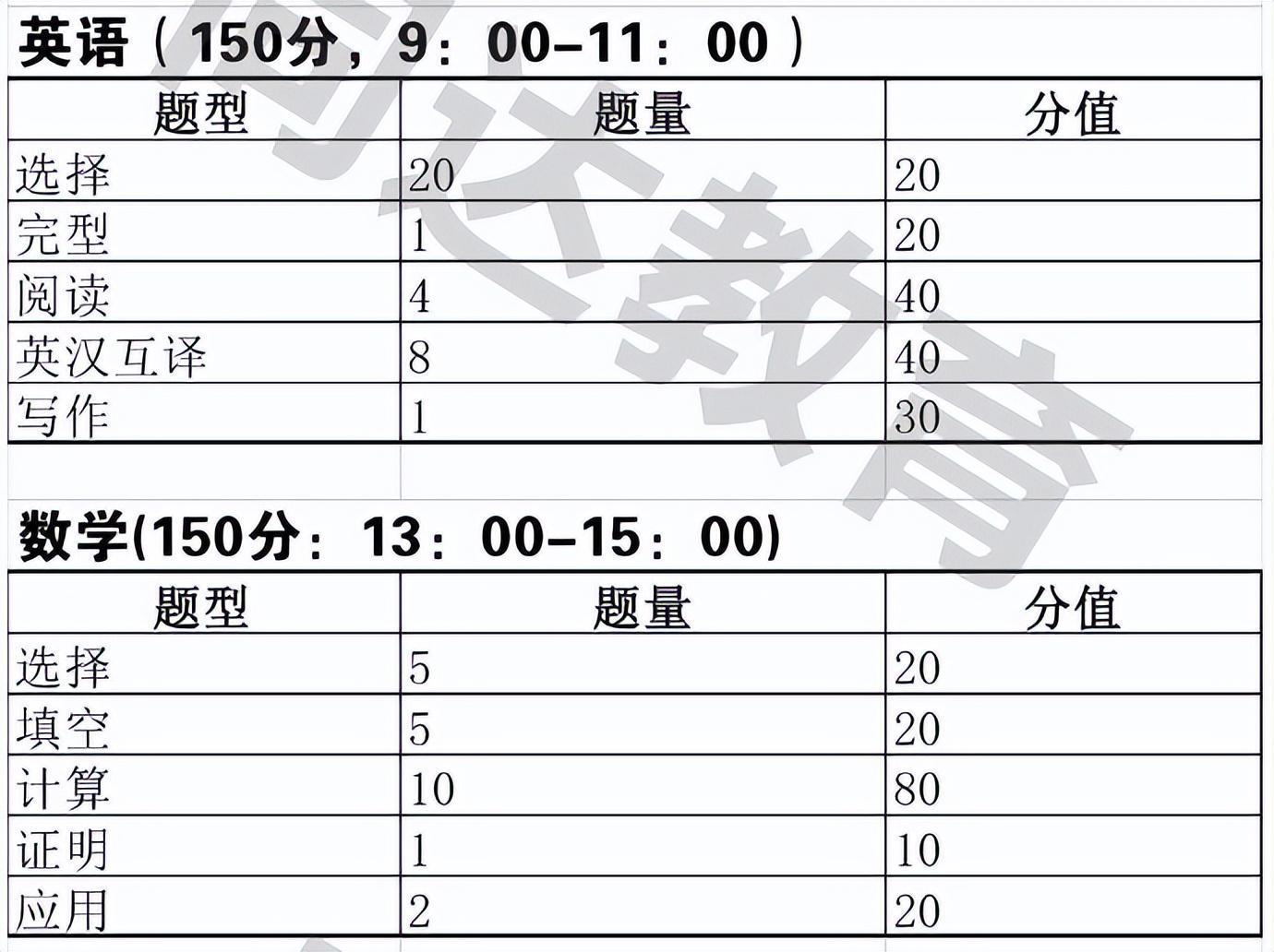 可报考专业+人数+考试科目