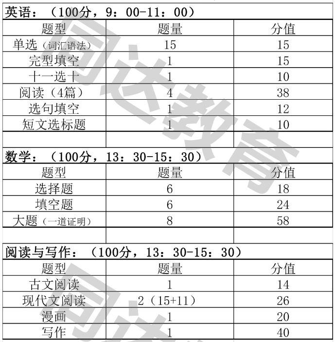 注:因为该校第一年招生。暂无题型和难度供参考。预测难度和上理、上政学校差不多。