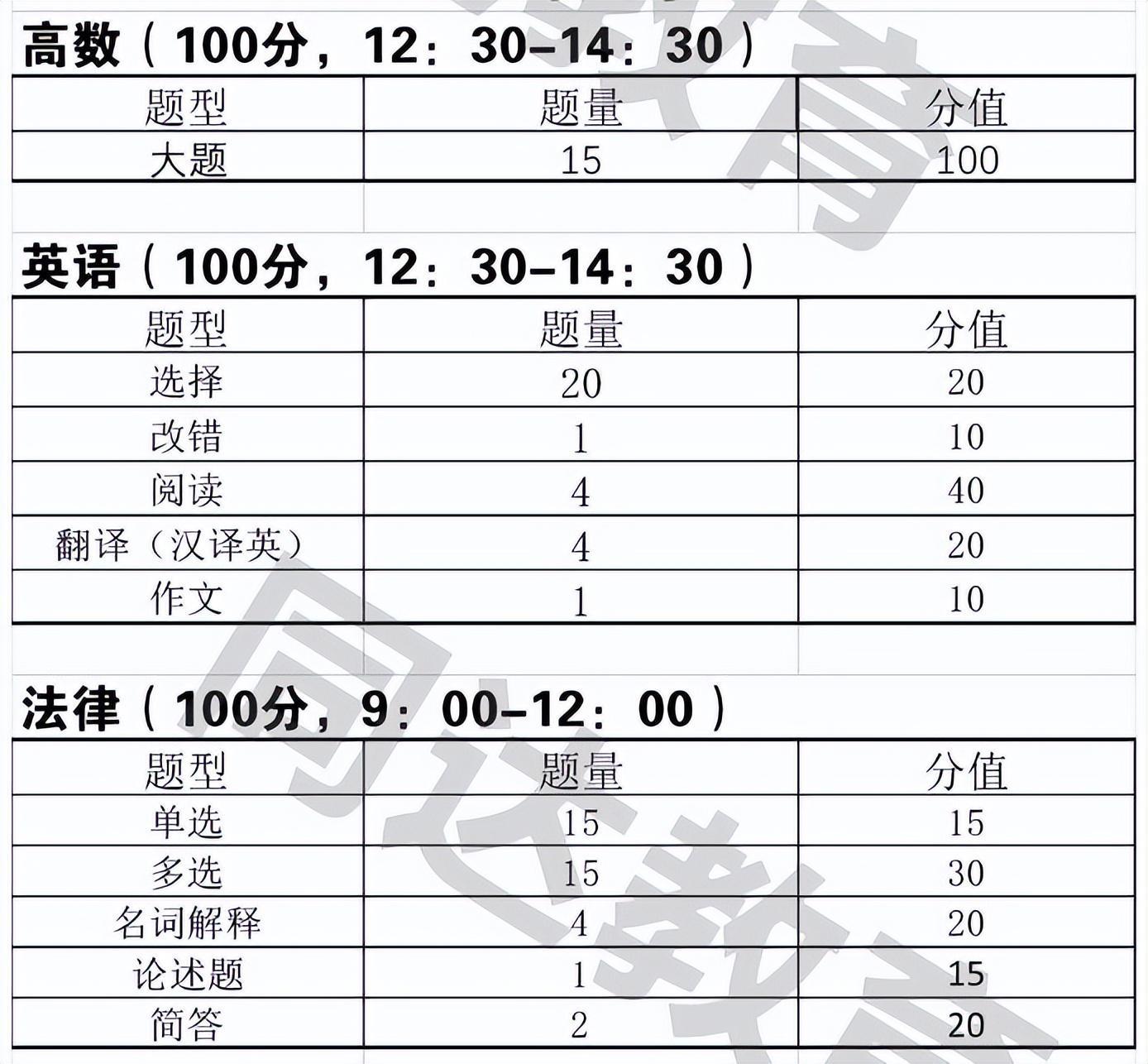 英语:考研以上难度,涉及较多的托福、雅思、专四词汇,还会涉及到专八的词汇,无听力