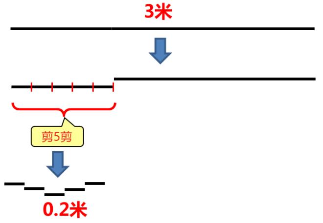 还是3米长的钢筋,不过,这次我们从中间裁成0.2米长,要裁几剪?,数学计算模型如图6所示。