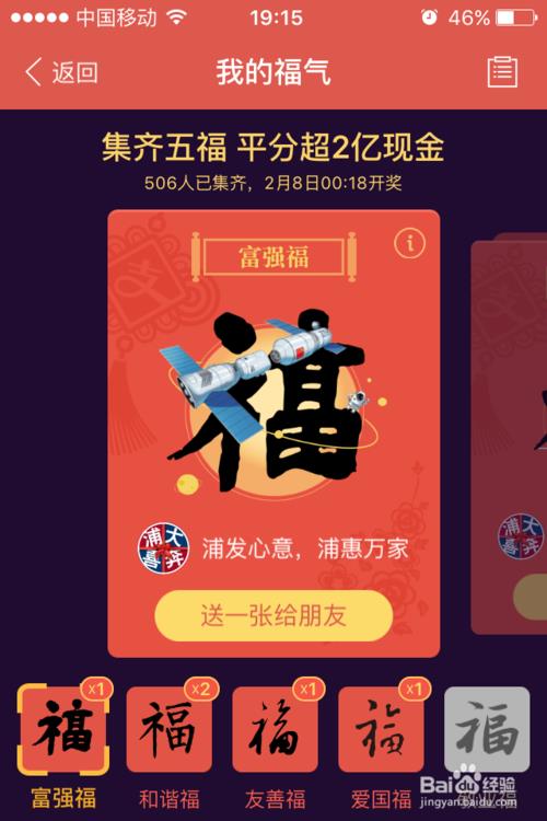步骤阅读 END 注意事项 福在送人时,当选择好友的时候,一定要小心,因为支付宝转发的时候没有确认对话框,一点击好友就发送出去了,发送出去的福不支持撤回,所以一定要小心