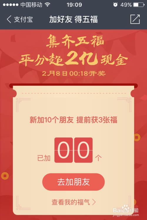 另外提醒,如果一个人有多个支付宝账户,可以自己加自己好友,每个支付宝账号都可以领到福,这样可以提升集齐福字的概率