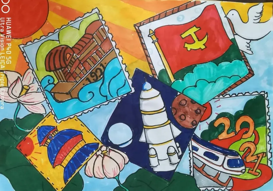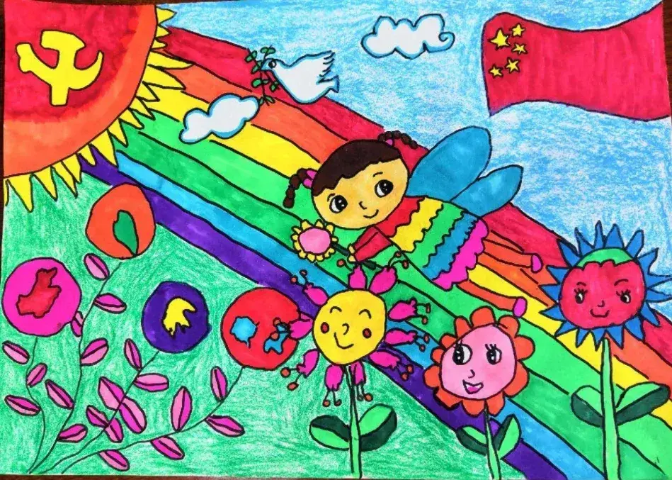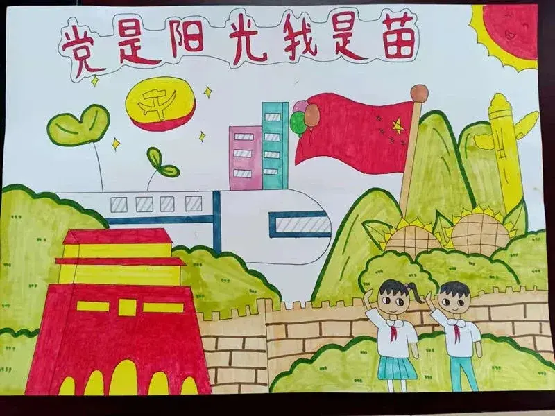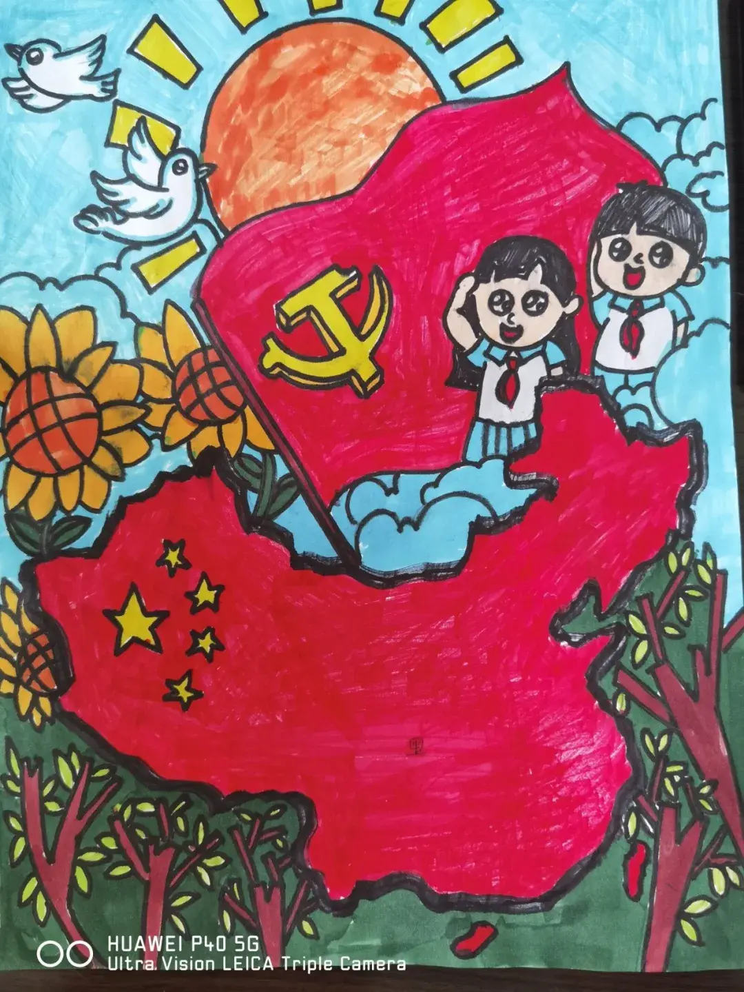 少先队员们的作品热情饱满,精神昂扬,绘画内容充分表达出了他们沐浴党的阳光、幸福健康成长的精神风貌,以及他们祝福党的生日的美好心声,表现出广大少年儿童对幸福生活的热爱,以及爱党、爱国、爱家的情怀。