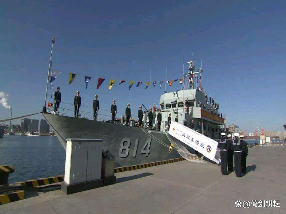 12、东港号扫雷舰,舷号814。属于082型猎扫雷舰,为我国新一代猎扫雷舰,满载排水量600吨。