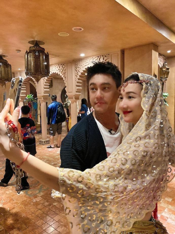夫妻俩的感情一直都十分的恩爱幸福,只看照片就可以看出来,朱孝天作为偶像组合的鼻祖,在老婆身边一直都是各种宠溺的眼光望着老婆,视线更是不离开韩雯雯,而韩雯雯,不管是简单的休闲装扮,还是颇有异国风情的浪漫装扮,都完美的穿出了自己的独特韵味和美感,加上本来就有点混血的五官,让头披纱巾的她更是惊艳太多。