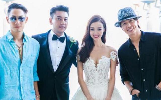 和朱孝天结婚的时候,婚礼现场更是高调张扬,言承旭,吴建豪都来到了现场,虽然F4没有全员到齐,但是依旧给了大家很珍惜的回忆,韩雯雯穿着性感的婚纱站在帅气的朱孝天身边,比起新郎新娘的庄重打扮,言承旭和吴建豪就更加的时尚一些,俩人穿着休闲的T恤,言承旭一顶黑白迷彩的礼帽让整身的装扮多了不少的正式感,而吴建豪还是一如既往的骚气时尚,穿着蓝色的衬衣成为合照中最让大家关注的人。