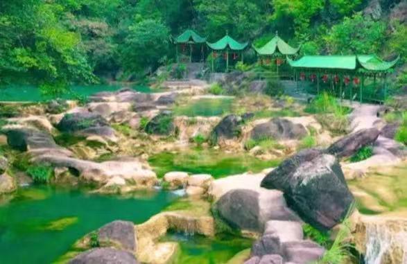 依稀能看见亭宇楼阁和山石依偎在一起,
