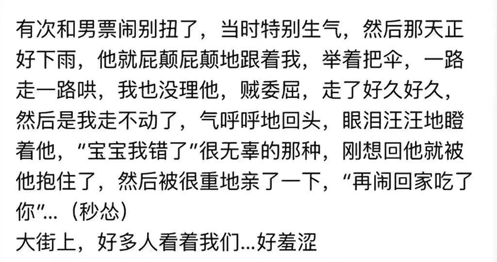 对于世界而言,你是一个人,但是对于我来说,你就是我的全世界.说一说你们之间最甜的事是什么?