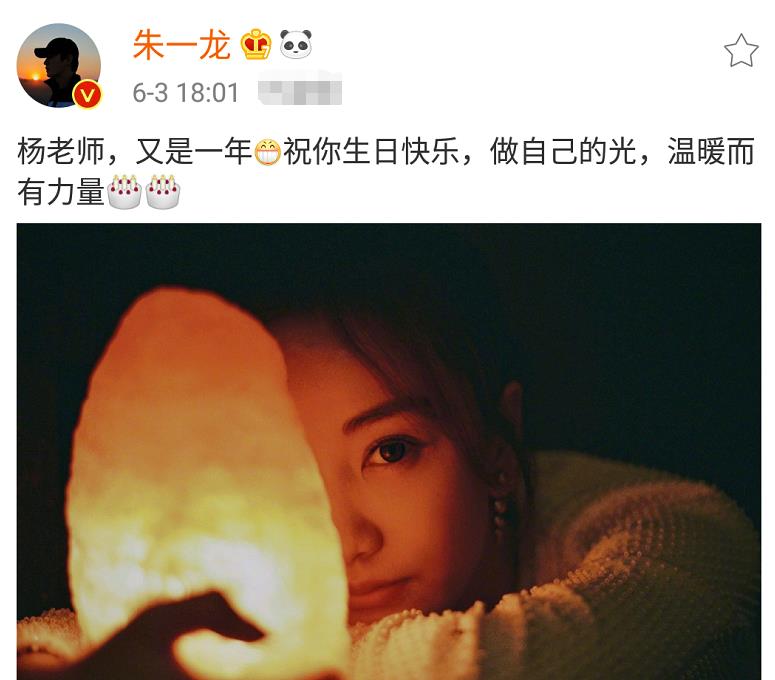 朱一龙发文称“杨老师,又是一年,祝你生日快乐,做自己的光,温暖而有力量”,简单的一句话却十分暖心,他配的图是杨蓉在昏暗的环境中抱着发光的灯,氛围很好,也与他的祝词有几分相符合。