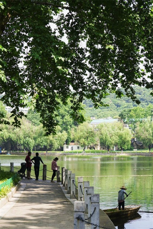 在两湖之间靠岸有一个水港,有一座高拱石桥,下面是一个小小河道。两边绿树成荫,从桥上走过,是绝佳的拍照背景。虽然不比其他地方声明显赫,但是莲花湖公园的清雅别致是独树一帜的。