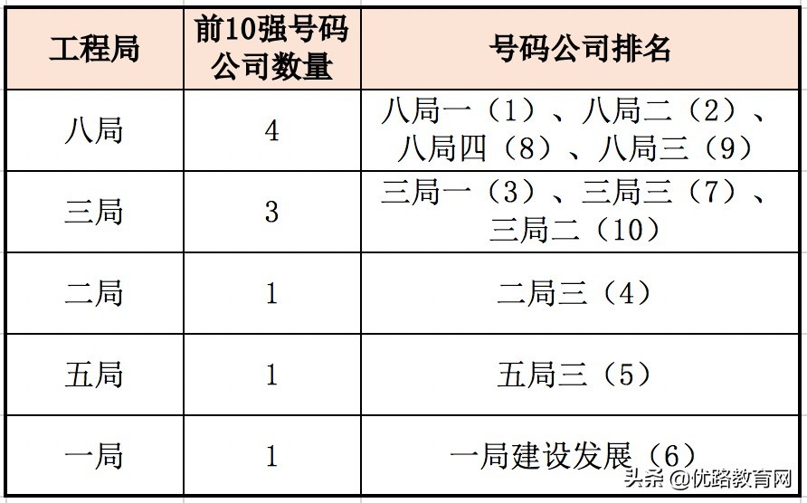 2020年排名前十的子公司,有四个都是八局的,三个三局的,一局、二局、五局各占一个。其实,八局能占四个,也在意料之中,毕竟这两年八局发展得非常好,甚至隐隐有超越三局的势头。而三局自从前几年下属的钢构子公司被分出去单干后,发展情况就不如之前那么猛了,但还是有底蕴的。