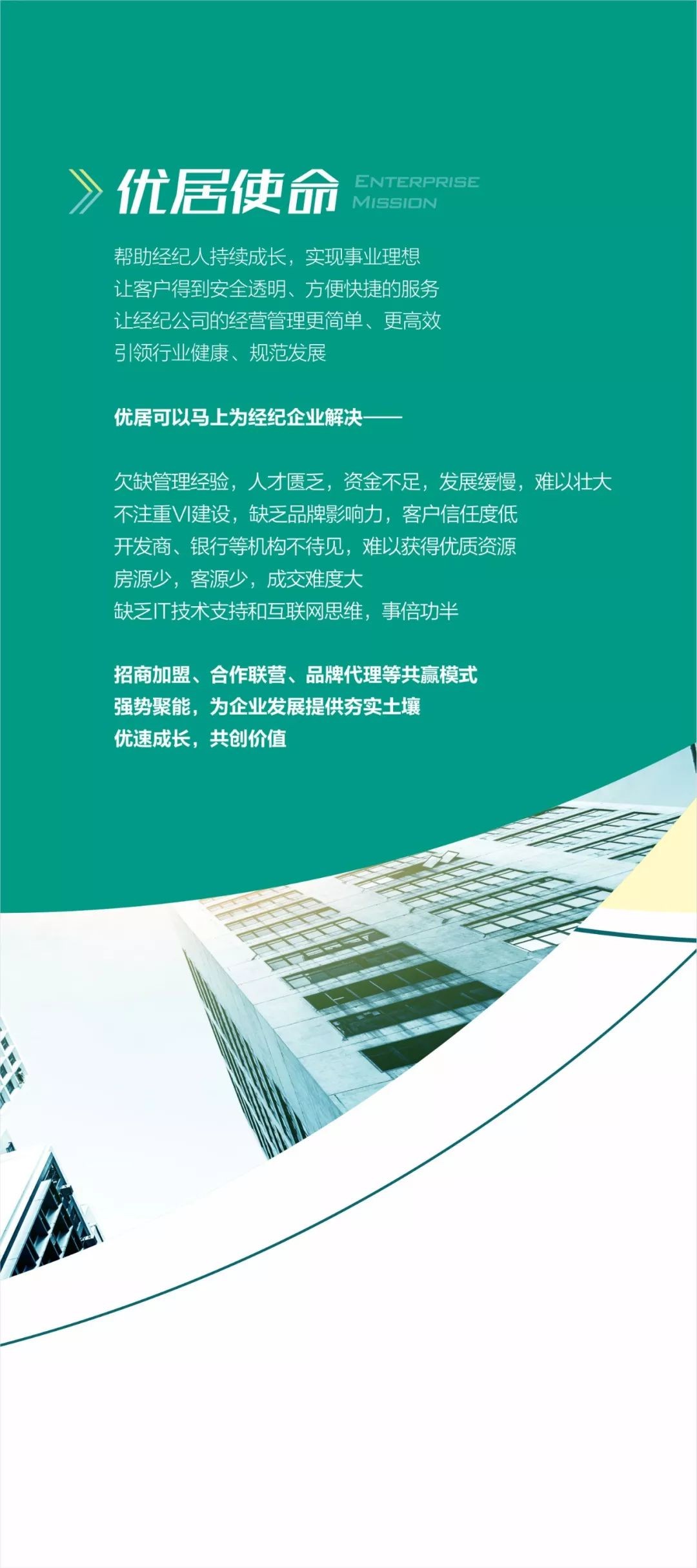 未来,优居将不忘初心,持续优化升级,为广大经纪公司和经纪人赋能,共享品牌规模经济效益;秉持“客户至上、阳光交易”服务理念,为客户提供安全透明、高效便捷的房产交易品质服务;引领行业健康、规范发展。