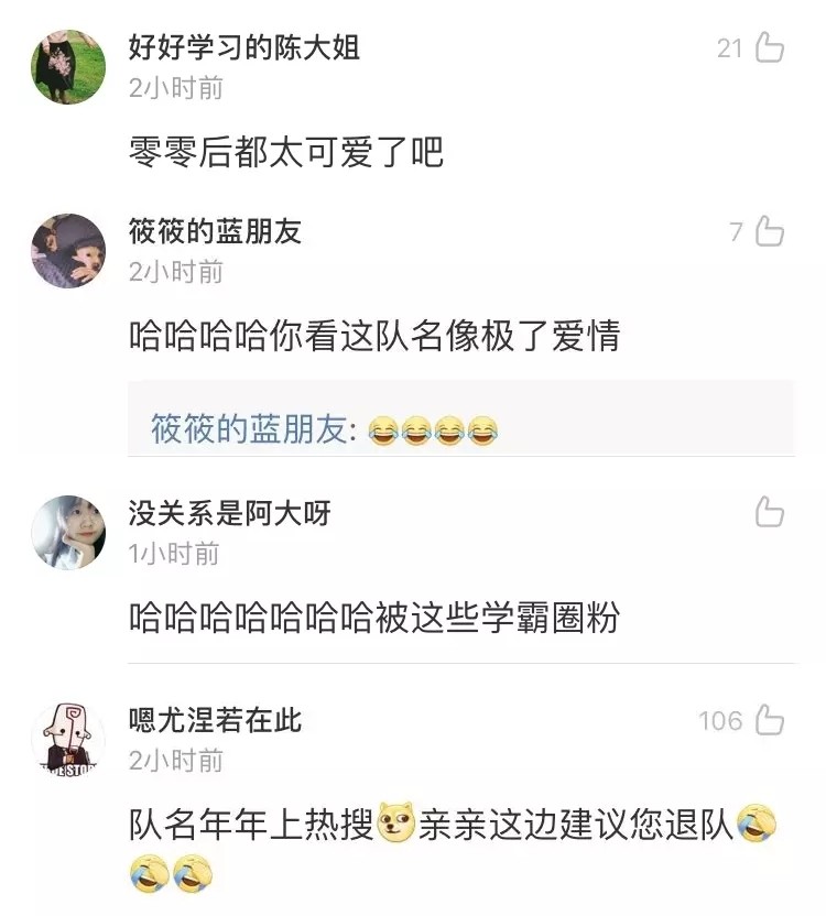 和去年的沙雕队名相比,不仅紧跟潮流,一些“梗”玩得更加6了。