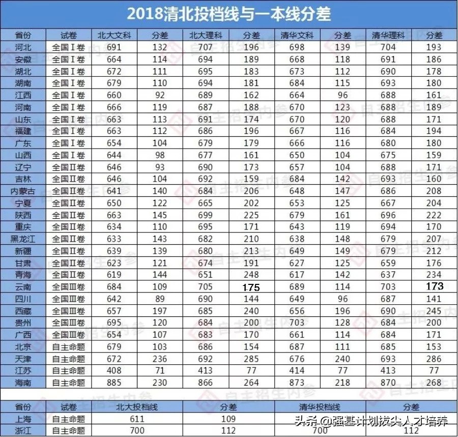 使用全国Ⅱ卷省份的学生,想要进入清北,文科至少要高于一本线93分,而理科的情况更为严峻,内蒙古、宁夏、陕西、黑龙江、新疆、青海一本线与北大、清华投档线相差均突破200分。一本线与北大投档线分差最大的为青海,高达248分,与清华投档线分差最大的为青海,高达234分;