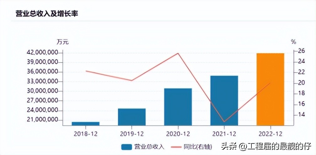 据中建八局年报和wind数据库显示,中建八局2022年总资产2859.64亿元,净资产762.06亿元,营业收入4188.17亿元,净利润达122.54亿元,中国建筑业施工企业中排名第一。其中,房建施工业务营收占比60.50%,基础设施建设业务营收占比30.10%,房地产投资开发业务营收占比7.31%,其他业务营收占比1.16%。中建八局2022年净利润是中国中铁最强工程局中铁四局(23.46亿元)的5.22倍,是中交集团最强工程局中交四航局(26.58亿元)的4.6倍,比中国能建(104.07亿元)、中国化学(57.78亿元)等整个央企集团的净利润还高,是当之无愧的宇宙第一工程局。