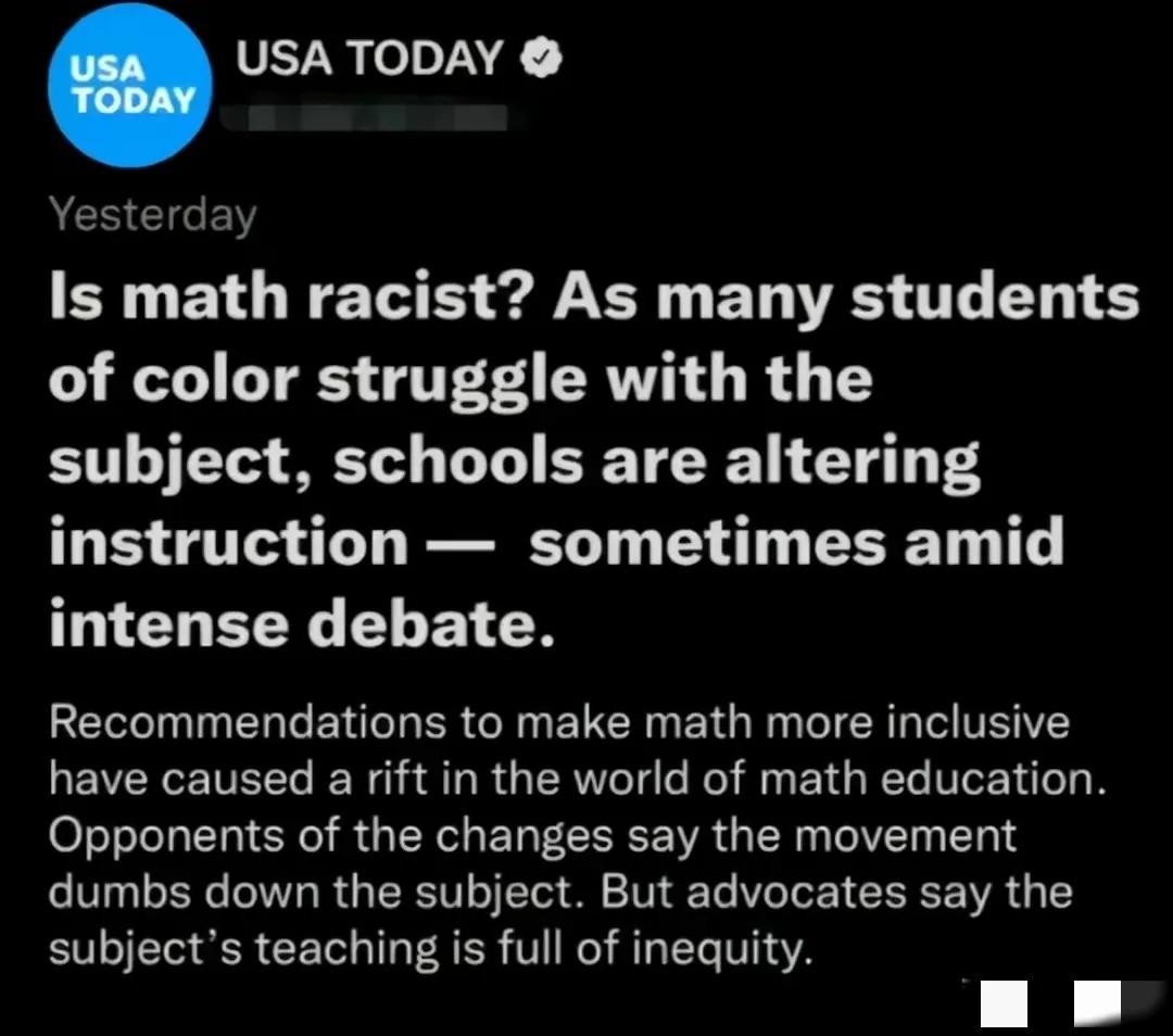前段时间有黑人认为应该废除数学这门学科,理由竟是因为黑人数学天生不好,这是种族歧视,没想到居然得到了众多的响应,甚至成为了当时的热搜。