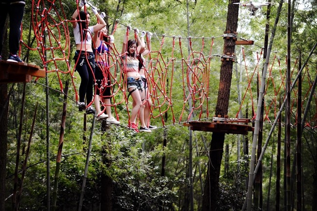 除了这些,石燕湖还增加了一些新的游玩项目。比如说,成人丛林穿越,该项目是在树林间由各种障碍项目组成了一条条挑战的线路,需要通过爬、滑、跨、跳、飞等动作通过障碍,最后到达终点。