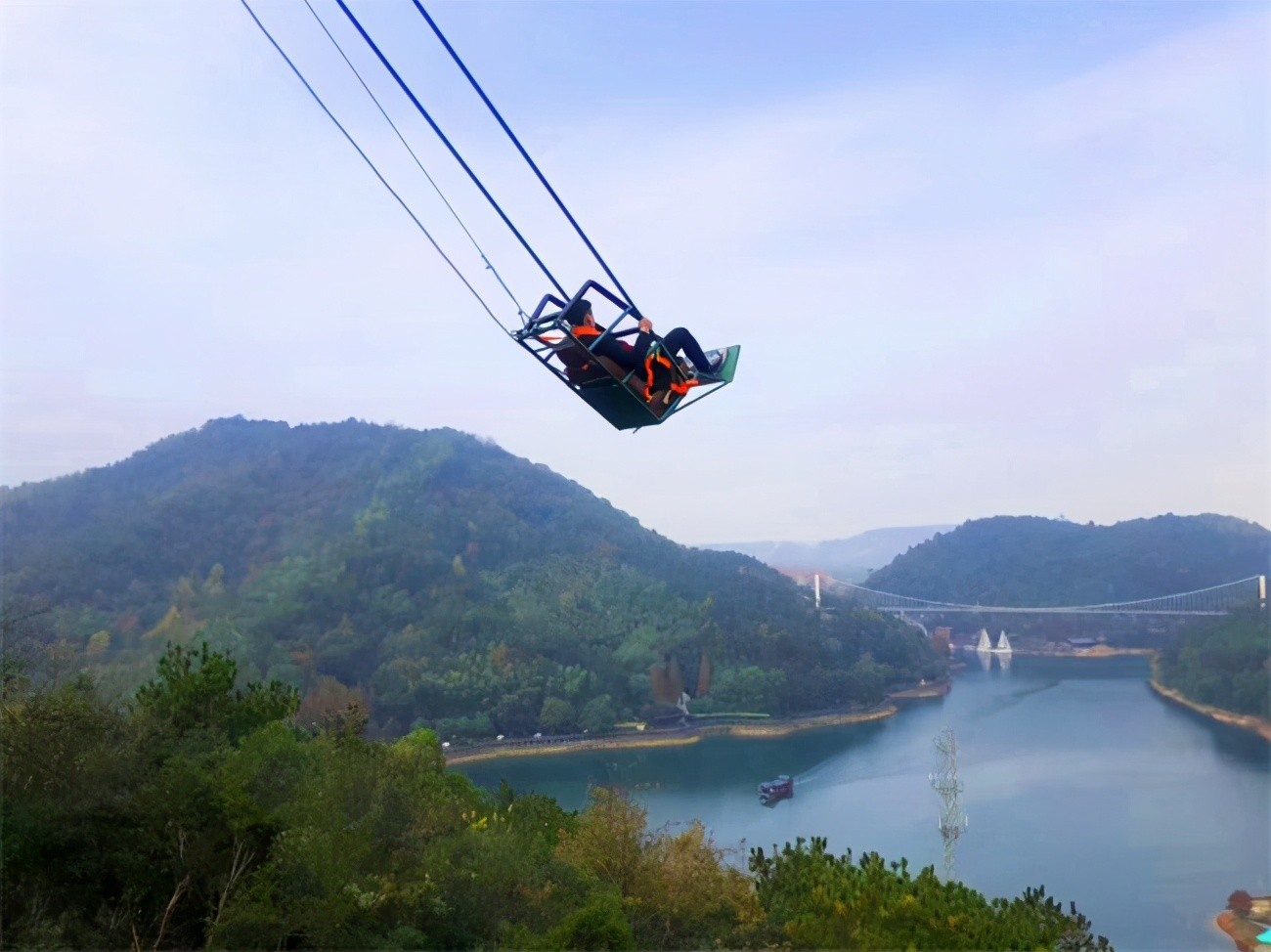 还有石燕湖的悬崖秋千,这个秋千建在亚热带森林乐园上方的悬崖边上,分为三个不同高度,代表着不同的挑战难度。在山顶之处可以俯瞰整个石燕湖全景,远眺还能与玻璃桥遥遥相对。