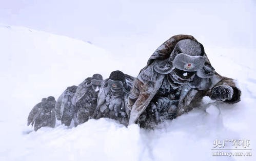 酷寒中的解放军在冰天雪地中巡逻。此图版权归于网络