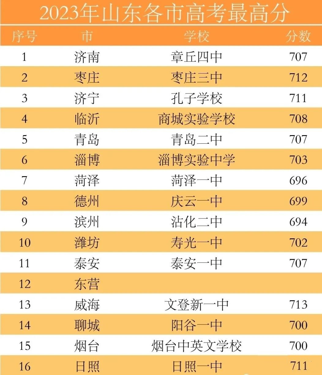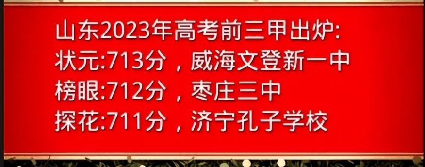 2023年山东高考状元 ,刘雅轩, 713分,来自威海文登新一中。榜眼,712分,来自枣庄三中。探花711分,来自济宁孔子学校。