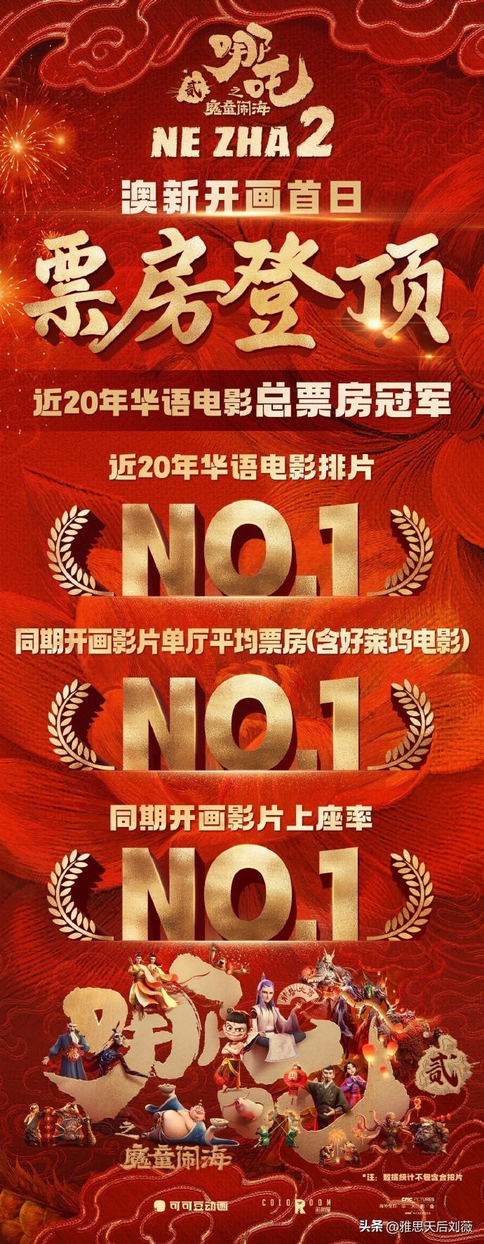 海外上映成绩上,澳新开画首日,登近20年华语电影总票房冠军!北美开画首周末票房,破近20年华语片北美票房纪录!