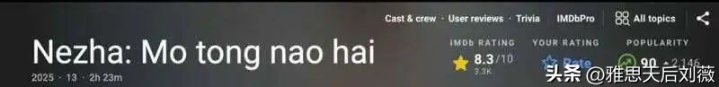 目前,互联网电影资料库(IMDB)网站显示,《哪吒2》评分为8.3分。