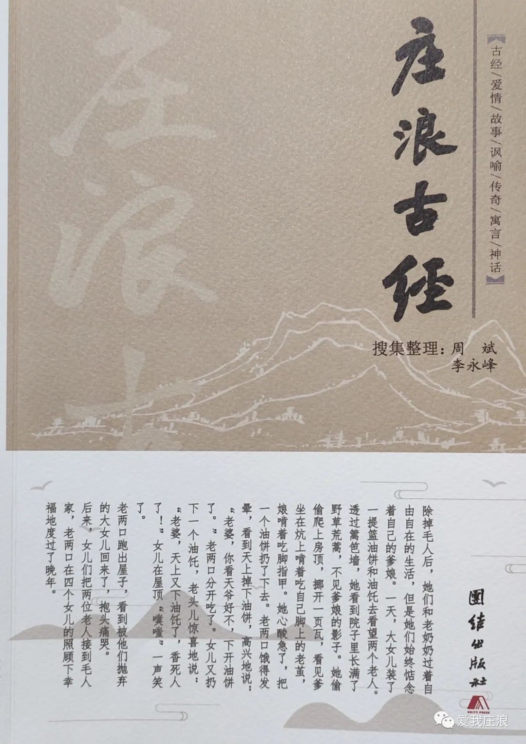 《庄浪古经》的面世,是缘于一个情结、一种感念,一场怀旧。小时候经常听老人们讲故事,也就是“古经”,“古经”里面蕴含的普世价值观潜移默化了幼小的心灵,也影响着许多人生成长的每一个阶段,因而时常感念,就萌生了让下一代也听一听我们曾经听过的故事的想法,让他们接受一些传统教育,想让他们从小接受顺善良、正直、诚信、有正义感的人生价值观。周斌先生广泛搜集了原始素材,从2018年开始,历时四年,和李永峰先生两个共同整理、修改、完善,于今年6月由团结出版社正式出版发行。