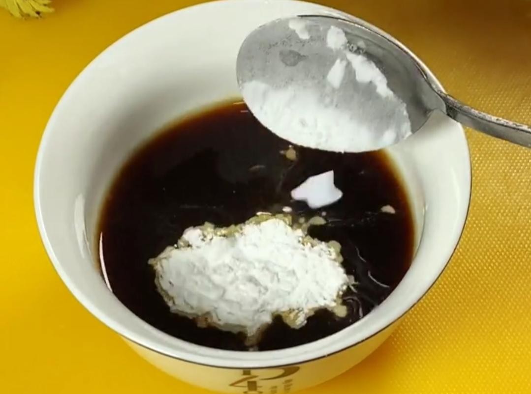 用一个空碗调点料汁,放入小半勺清水,半勺生抽,半勺老抽调色,适量的盐,鸡精,白糖,再来点十三香,一小勺玉米淀粉,搅拌均匀放一边备用。