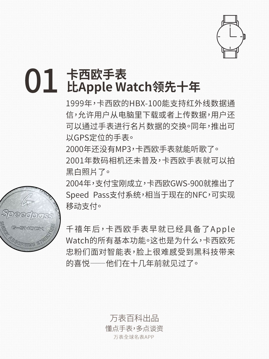 黑科技的发明都讲究一个先来后到,在卡西欧面前,Apple Watch确实要叫一声爸爸。你现在戴的智能手表,也许就是十几年前卡西欧手表玩剩下的黑科技。具体可翻看图片~
