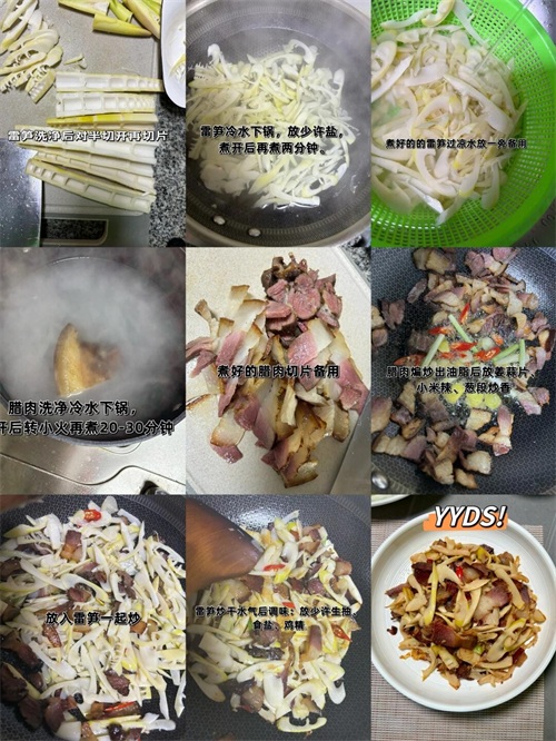 小贴士:腊肉的咸香与鲜笋的清脆完美结合,每一口都是春天的味道!