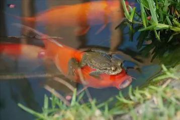 蟾蜍把前足深深的按住鱼的眼,把鱼活活的弄瞎掉,致使鱼失明而死亡或者是遭天敌捕食。基本上被蟾蜍抱住的鱼都没有生还的可能。