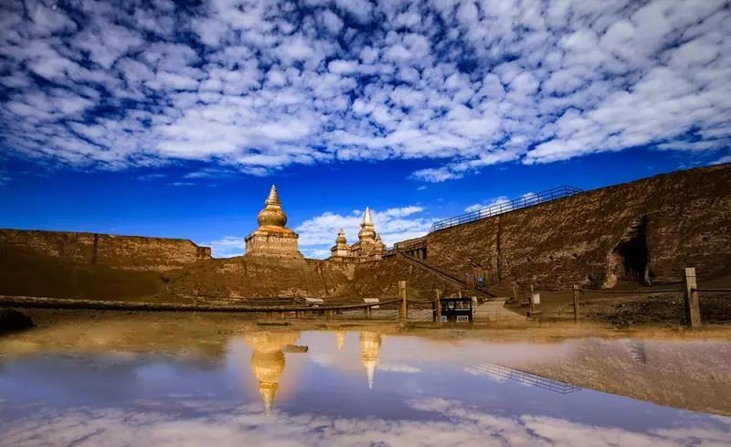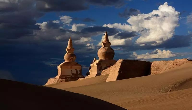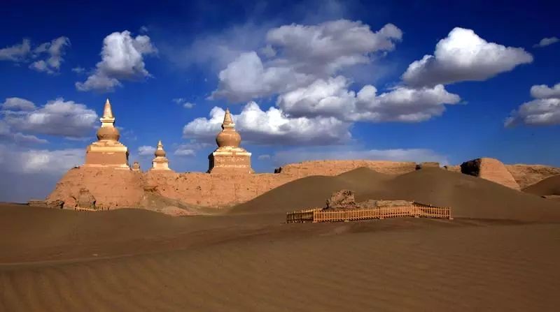 黑城遗址位于额济纳旗达来呼布镇南偏东方向约22公里(东经101.147度,北纬41.7647度)处,是古丝绸之路北线上现存最完整、规模最宏大的一座古城遗址。该城建于公元九世纪的西夏政权时期。公元1372年明朝大将冯胜攻破黑城后遭废弃。