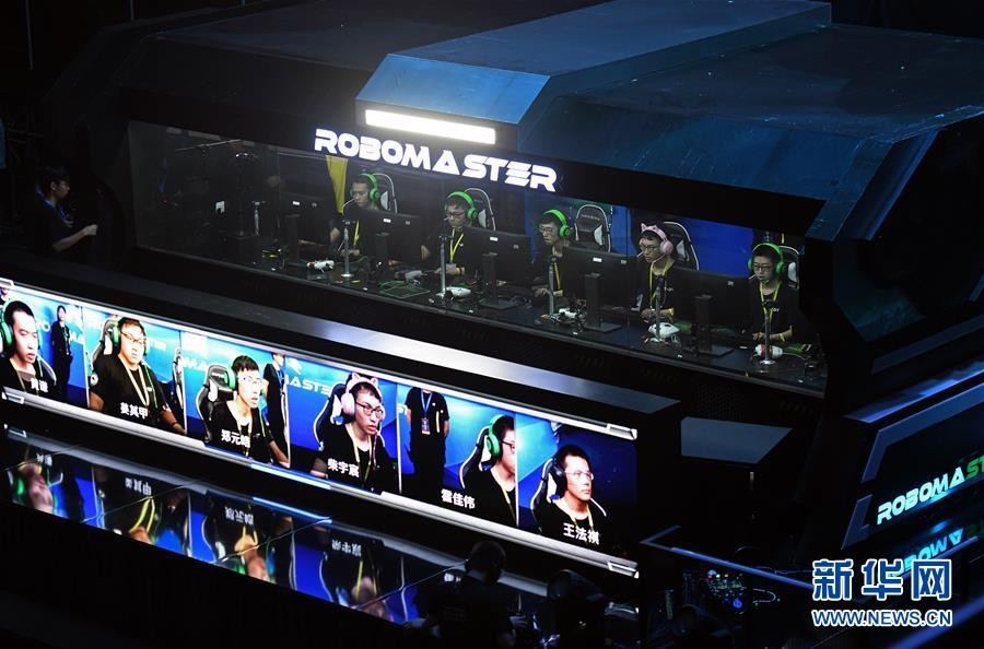 8月11日,东北大学TDT战队队员在冠亚军争夺战中操作机器人。 新华社记者 梁旭 摄