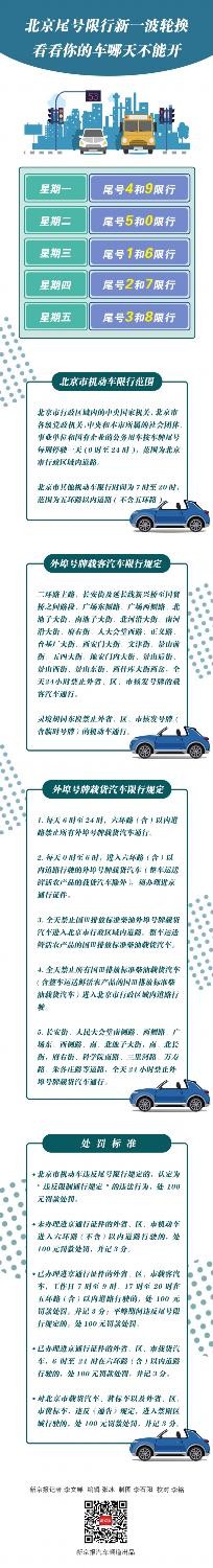 新京报讯(记者 李文娣)依据《北京市人民政府关于实施工作日高峰时段区域限行交通管理措施的通告(京政发[2019]6号)》规定,2019年7月8日—10月6日尾号限行如下: