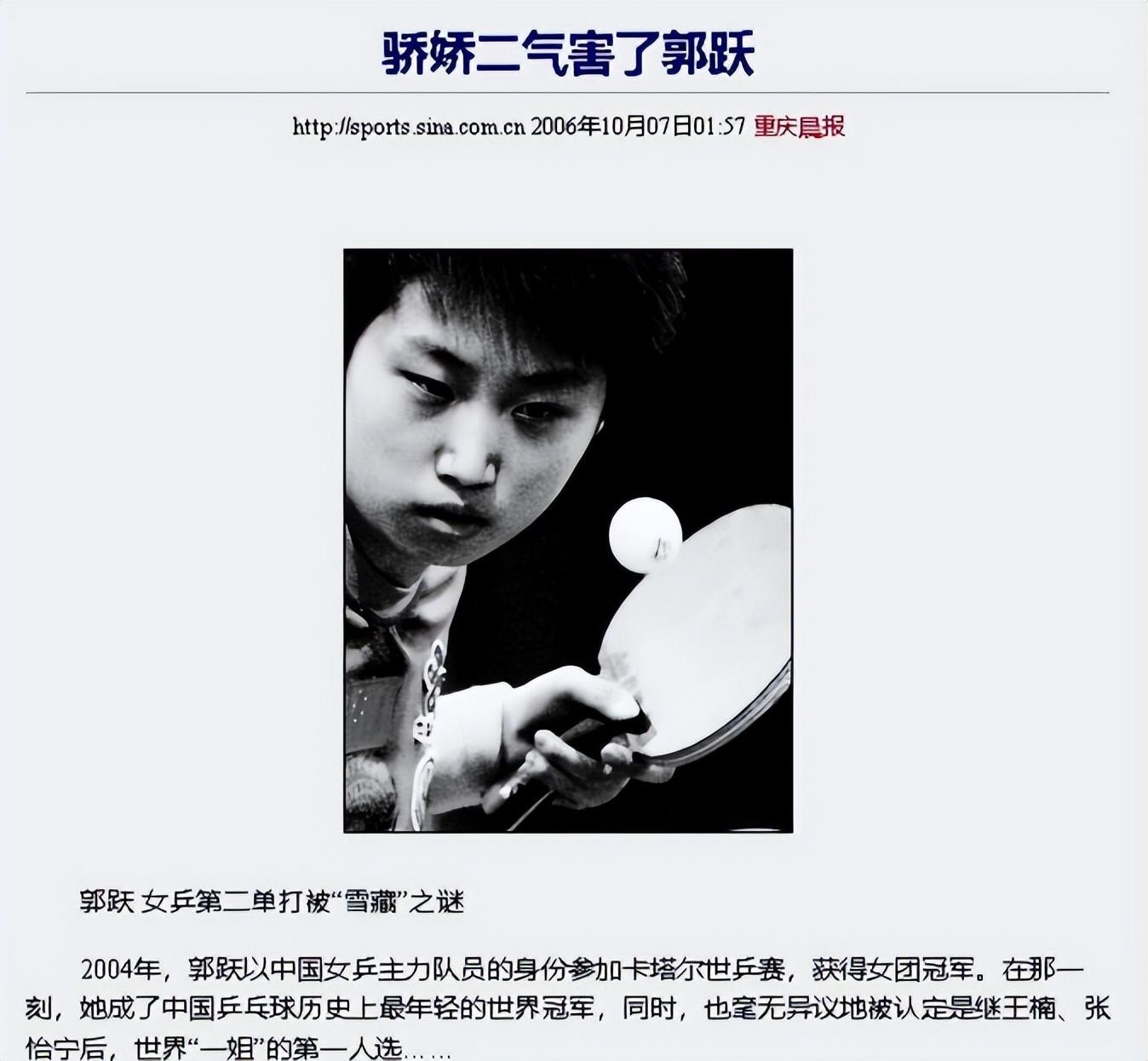 谁能想到,这位被誉为"乒乓球界邓亚萍接班人"、曾经横扫世界赛场的天才少女,在6年前竟然遭到了国家队开除的厄运?当年郭跃虽然早已知名,却鲜有人意识到她不仅在球场上叱咤风云,生活中也遭遇了不少风雨坎坷。