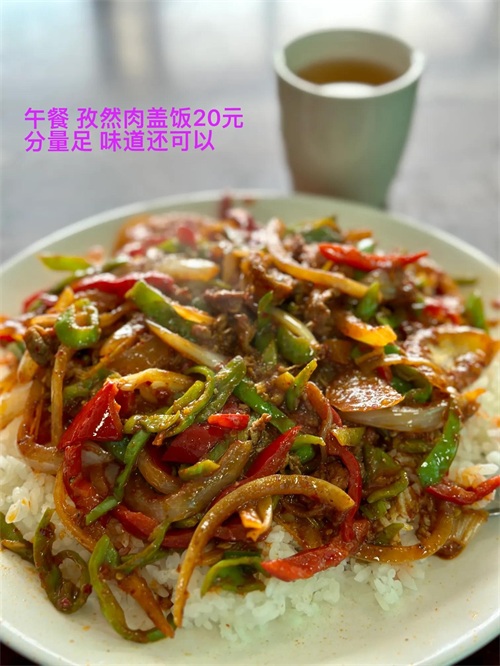 午餐吃了个孜然牛肉盖饭,20元,分量很足,味道也不错。