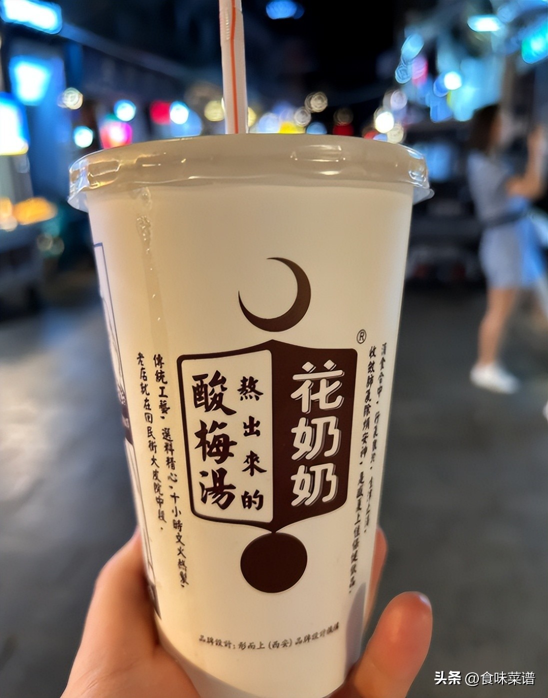 “花奶奶酸梅汤”,一杯7元,现场喝需要排队,酸梅汤的味道十分独特,既不会让人感到过分甜腻,也不会有刺激的酸涩感。