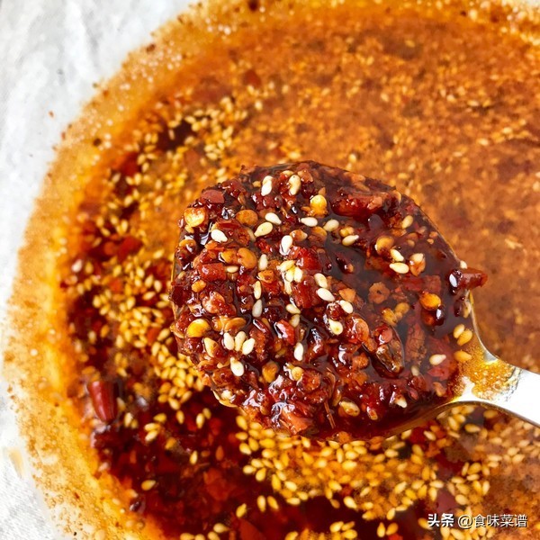最关键的一步在于“油泼”,热油的温度控制得当,才能将辣椒粉中的香味完全激发出来。