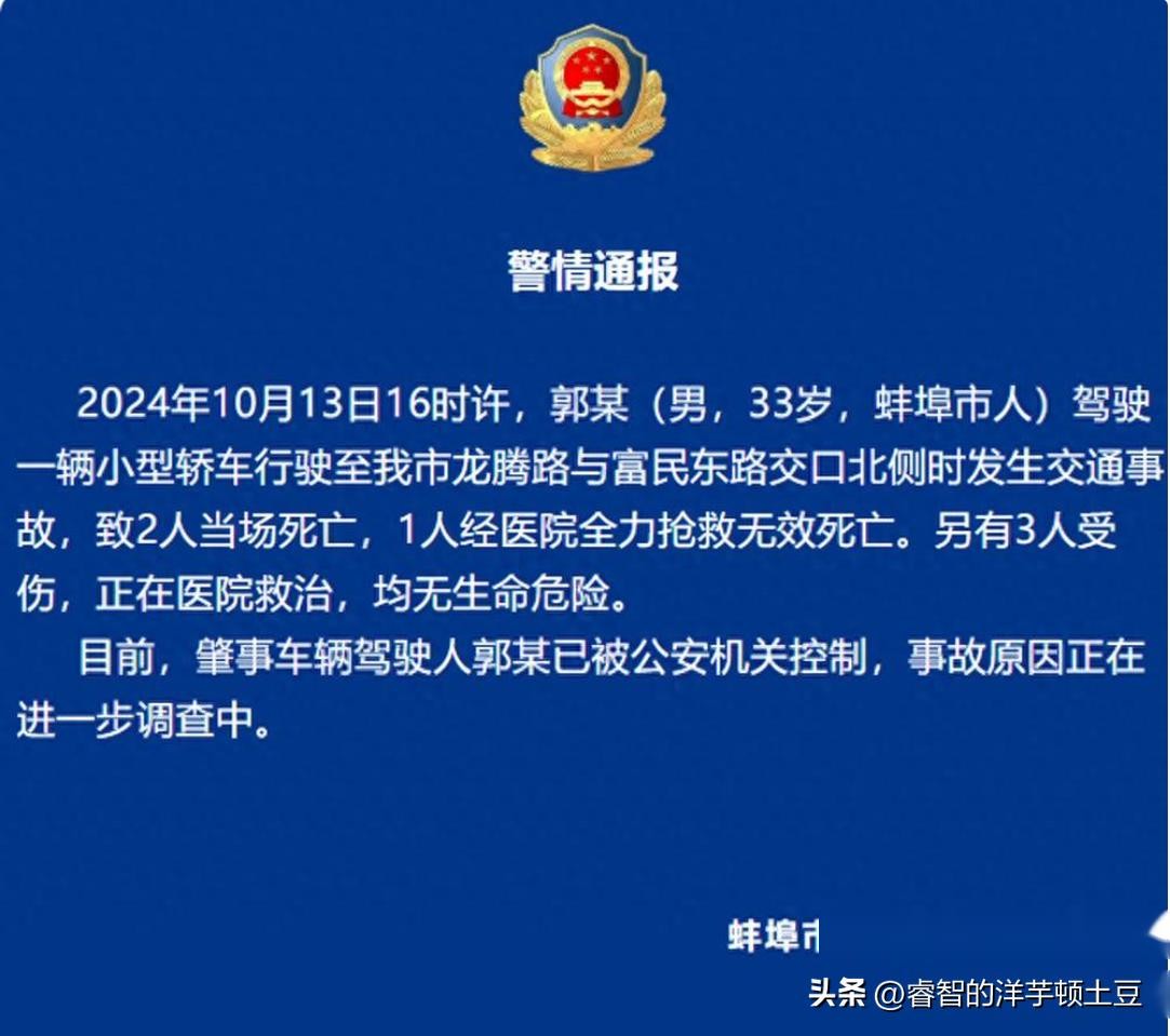 2024年10月13日下午,安徽蚌埠市龙腾路与富民东路交口,一场突如其来的车祸震惊了所有人。一辆黑色新能源小轿车,如同一头失控的猛兽,直接冲向前方的三轮车和电动车,瞬间夺走了三条鲜活的生命,还有三人受伤,现场触目惊心。