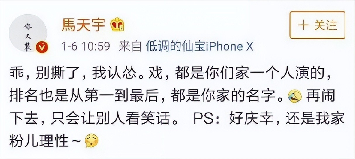 咱就是说,就这一段话发出来,除了马天宇粉丝会觉得他可怜之外,谁会觉得马天宇好啊?又想争番,又要好名声,情商还这么低,得亏钟汉良大度没跟他计较。
