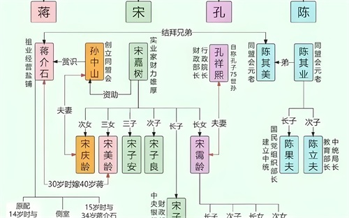 坊间流传着一句顺口溜:“蒋家的权力,陈家的党,宋家的佳丽,孔家的钱”