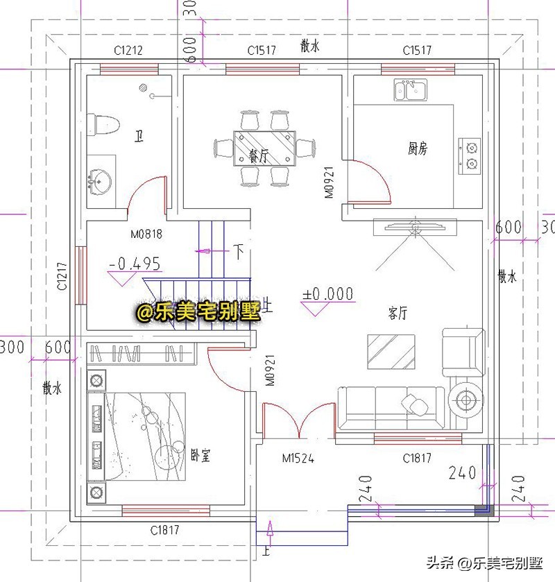 一层:客厅、餐厅、厨房、卧室、卫生间